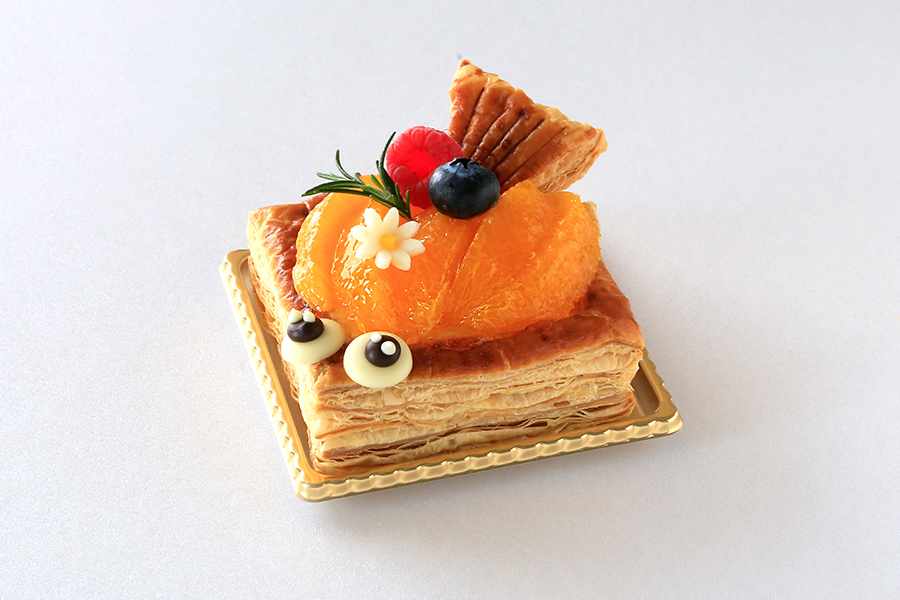 4月1日のエイプリルフールに食べるフランスの伝統菓子。魚をかたどったサクサクのパイ生地に清見オレンジと自家製カスタードクリームをのせました。