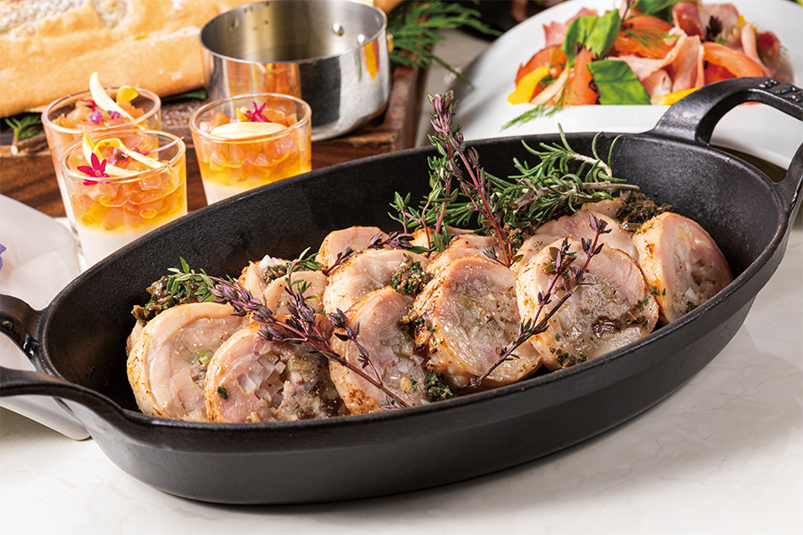 土佐はちきん地鶏と四万十の天然塩麹を使ったバロティーヌ グリーンハーブタプナード
