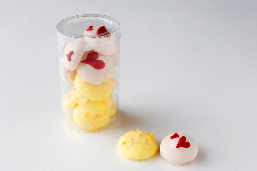 フルーツのピューレで作ったマシュマロをチョコレートでコーティングしたギモーヴショコラ。フランボワーズとパッションフルーツの2種をお愉しみいただけます。