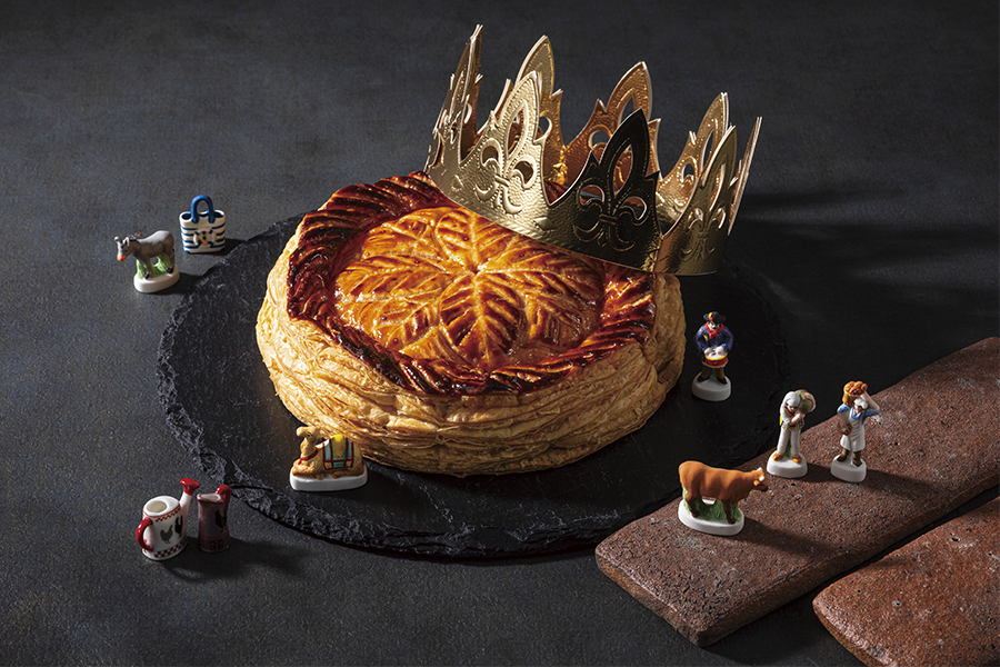ケーキの中から陶器のフェーブが出てきた人は1年間幸運に!バターの香り豊かなパイには濃厚なアーモンドクリームがたっぷり。新春はフランスの伝統菓子「ガレット・デ・ロワ」を囲んで、楽しく2026年を占ってみてはいかがでしょうか。